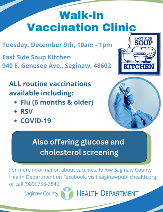 Currently, we are able to bill Medicaid, Blue Care Network, Priority Health, ASR, McLaren Health Plans, Tri-Care Standard, Medicare (Flu and Pneumonia only), and some Blue Cross Blue Shield of Michigan and some HAP insurance plans for the cost of covered vaccines. You must present a picture ID and your insurance card at the time of service. Clients are advised to contact their insurance company to determine which Immunizations are covered at the Saginaw County Health Department.